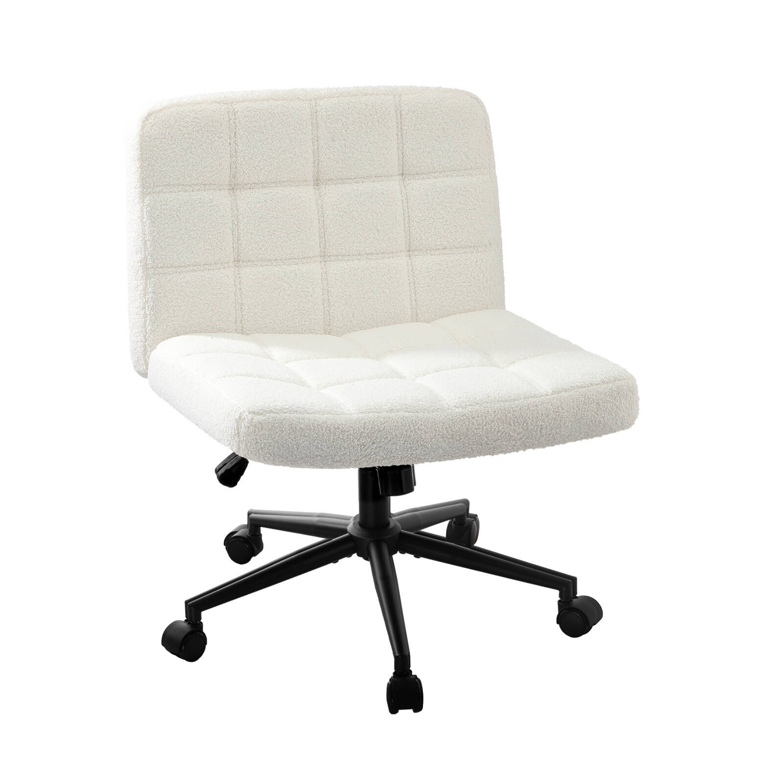 Mukava Armless Office Chair Wide Task Chair with Wheels White Technical Fabric Cross Legged Desk Chair with Double Thickened Padding Swivel Vanity Very well made.
