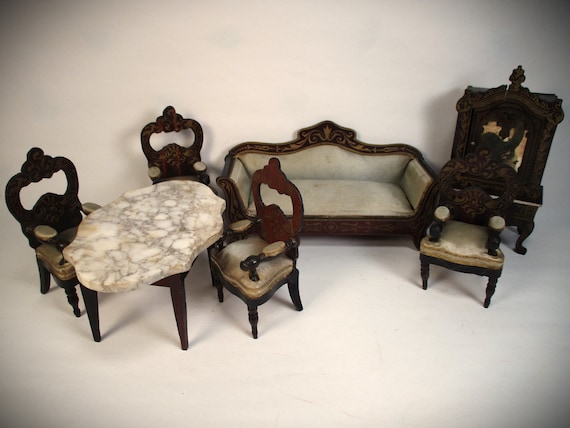 Sale Antique Dollhouse Furniture Biedermeier Seven Piece Parlor Set Made in Germany 1 12 Scale Etsy Very well made.