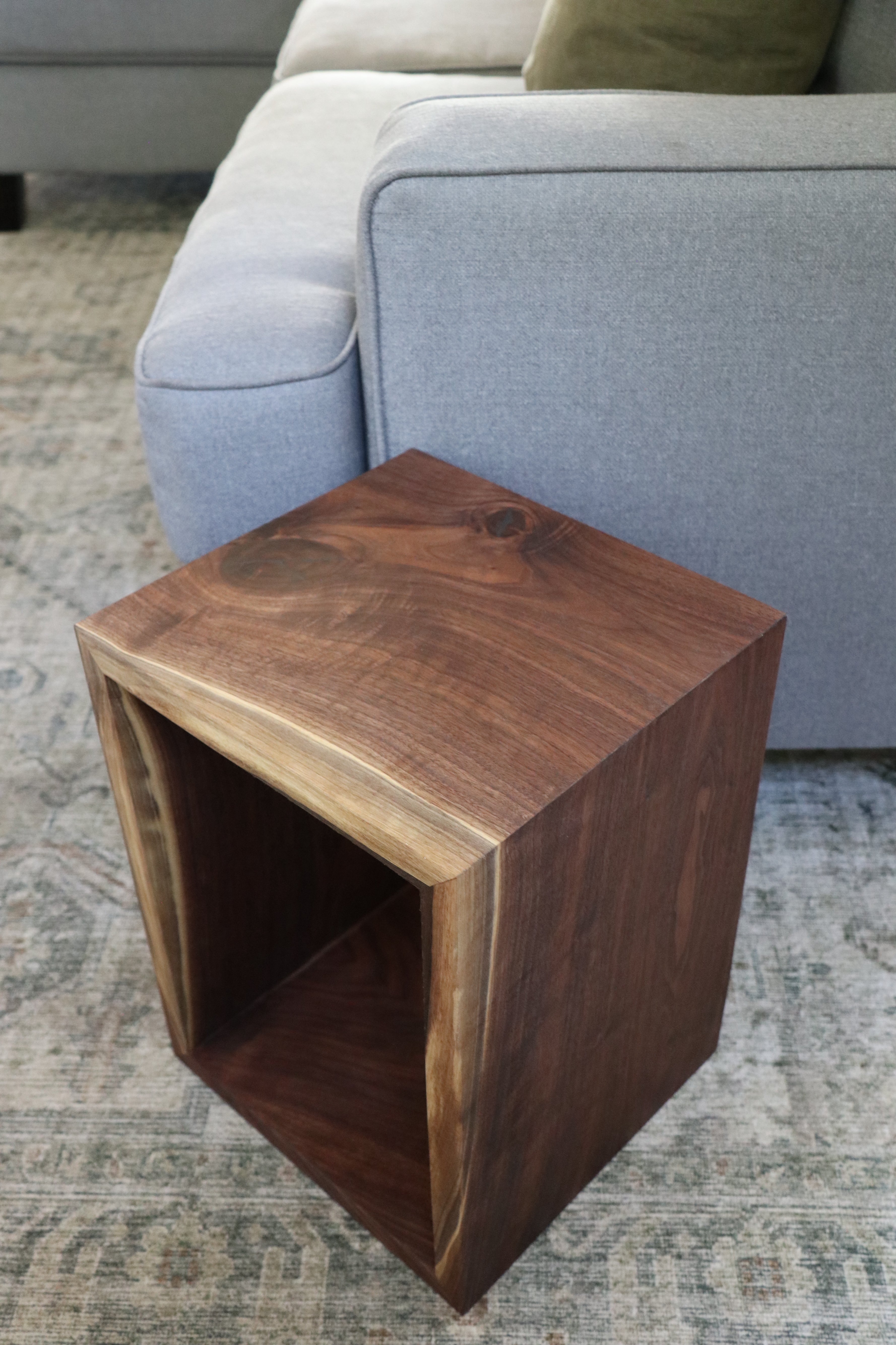 Walnut Solid Wood Cube Side Table 12 x 12 x 20 H by Alabama Sawyer Very well made.