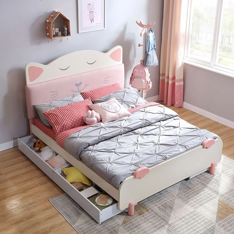 Linsy Modern Children Bedroom Furniture Soft Cat Bed Wooden Cat Queen Size Single Bed Frame For Girl Ea1A BestSuppliers Very well made.