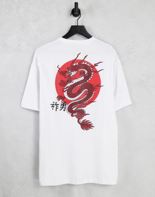 Selected Homme oversized t shirt with dragon back print in white Very well made.