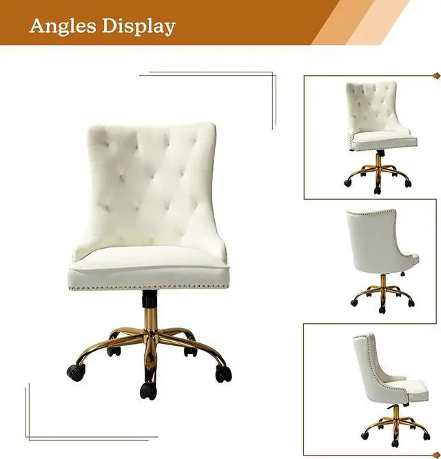 TINA S HOME Velvet Armless Office Chair with Gold Base Nailhead Trim Modern Tufted Upholstered Desk Chair Swivel Adjustable Cute Wingback Computer Task Vanity Chair for Women Ivory Newegg Very well made.