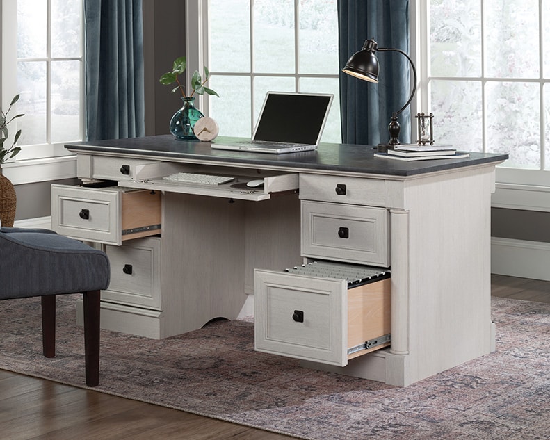Sauder Palladia Engineered Wood Executive Desk in Wind Oak Finish BushFurnitureCollection Very well made.