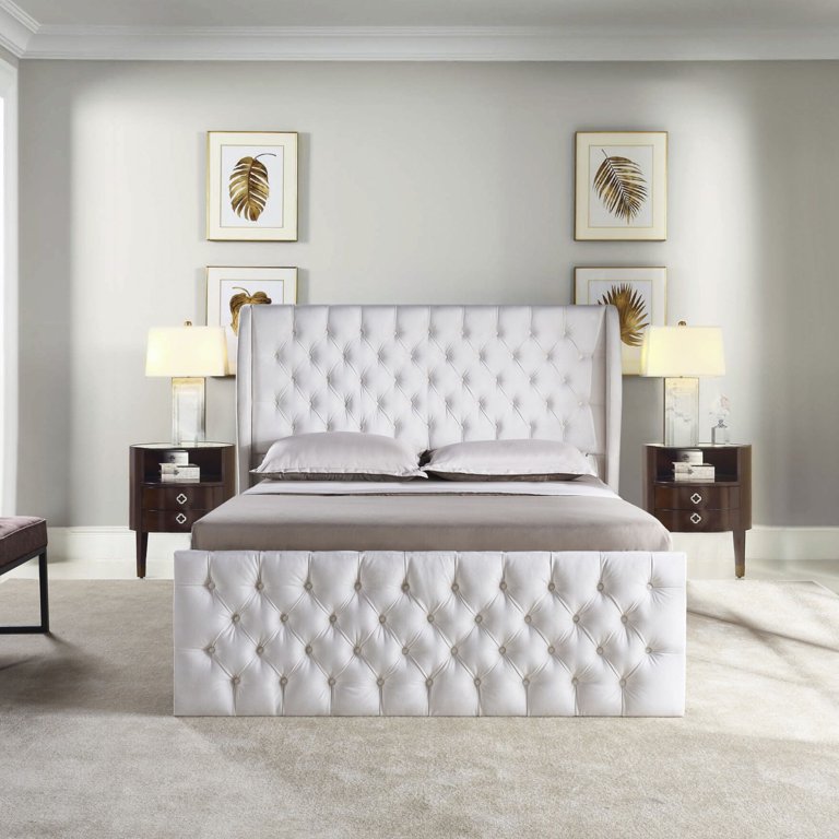 Upholstered Wingback Velvet Fabric Chesterfield Bed King Size Platform Bed Button Tufted Headboard with Vintage Wing Bed Bath Beyond 38387466 Very well made.