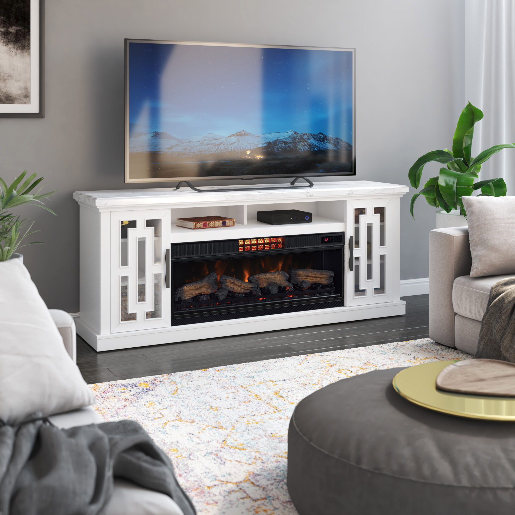 Costco Electric Fireplace Mantle TV Stand Storage AptDeco Very well made.
