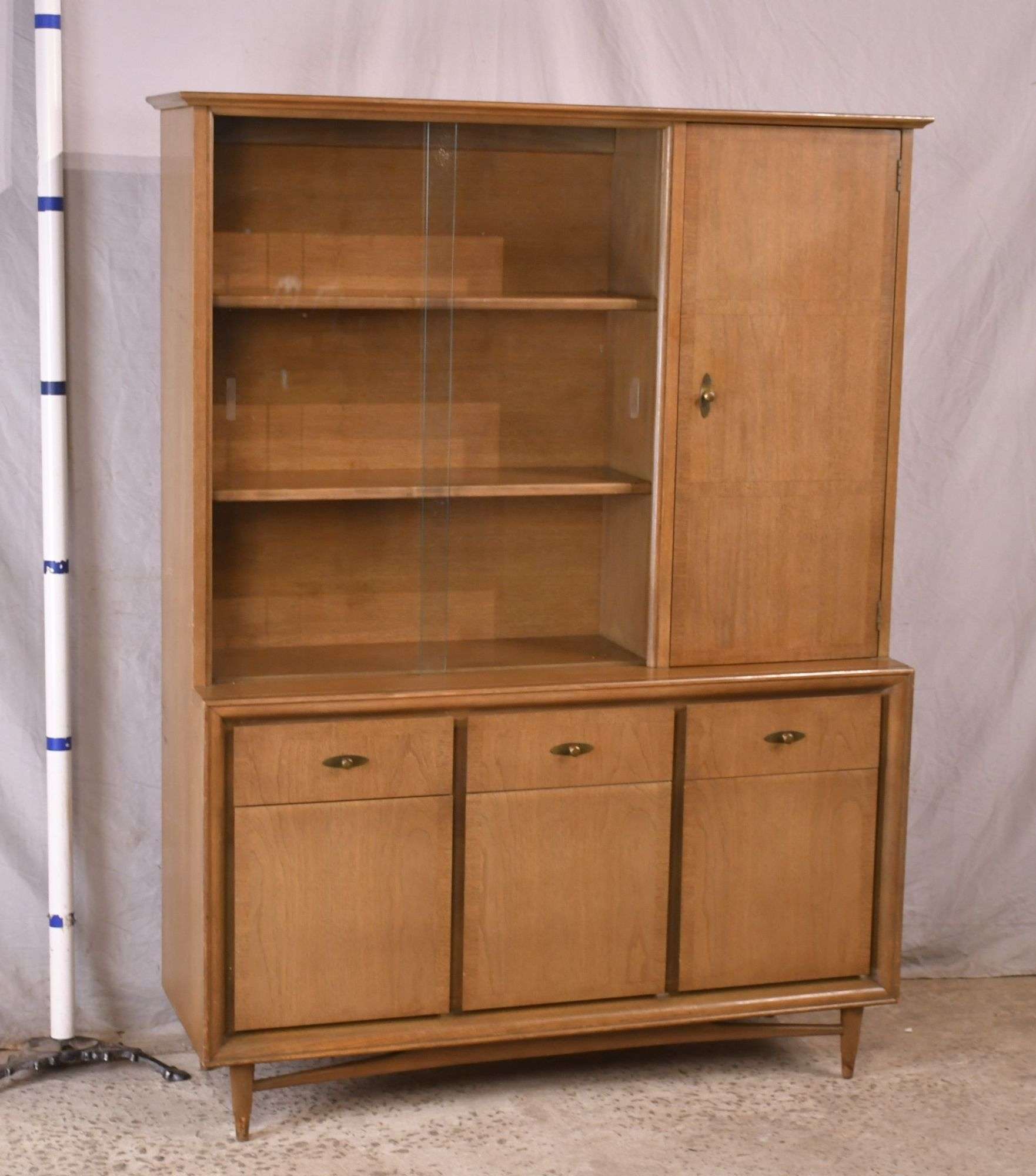 Kroehler walnut mid century style china cabinet with sliding glass doors 55 10832 R.H. Lee Co. Auctioneers Very well made.
