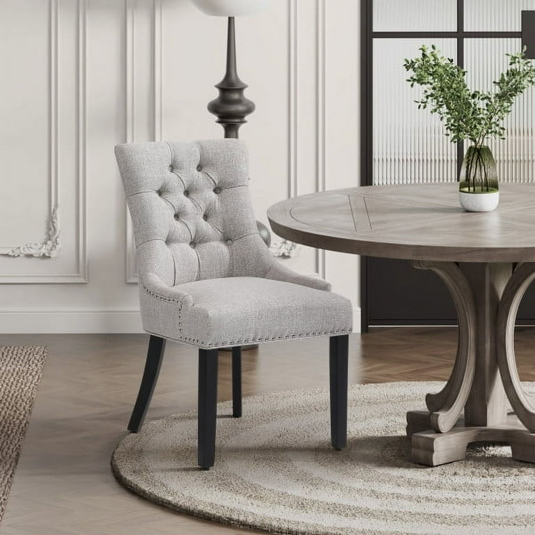 WestinTrends Hayes Upholstered Dining Chairs Linen Fabric Modern Wingback Button Tufted Kitchen Dining Room Chairs with Solid Wood Legs Light Gray Very well made.