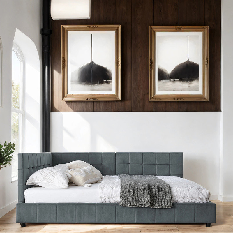 UBIBLA L Shape Corner Bed Frame Velvet Upholstered Tufted with Slat Bed with Headboard for Bedroom Nook Wayfair Very well made.