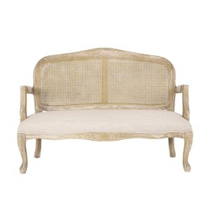 Havana 42 Cane Rattan Upholstered Bench Settee Ivory White Boucle Very well made.