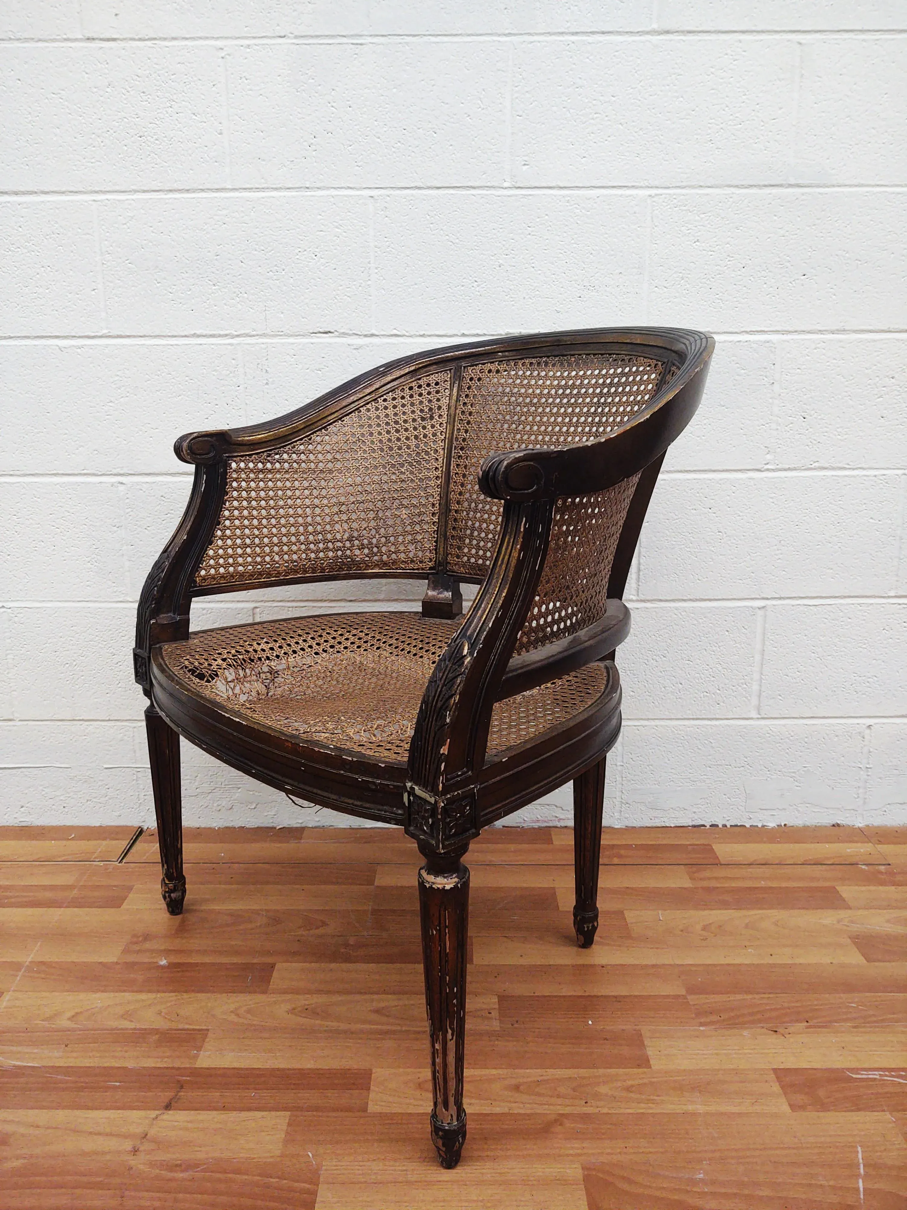 Early 20th Century Vintage French Walnut Cane Barrel Back Chair Very well made.