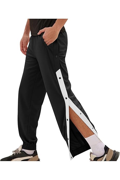 Amazon Generic Mens Tear Away Breakaway Athletic Pants Side Snap On Casual Joggers Athletic Buckle Basketball Warm Up Sweatpants with Pocket Black Medium Clothing Shoes Jewelry Very well made.