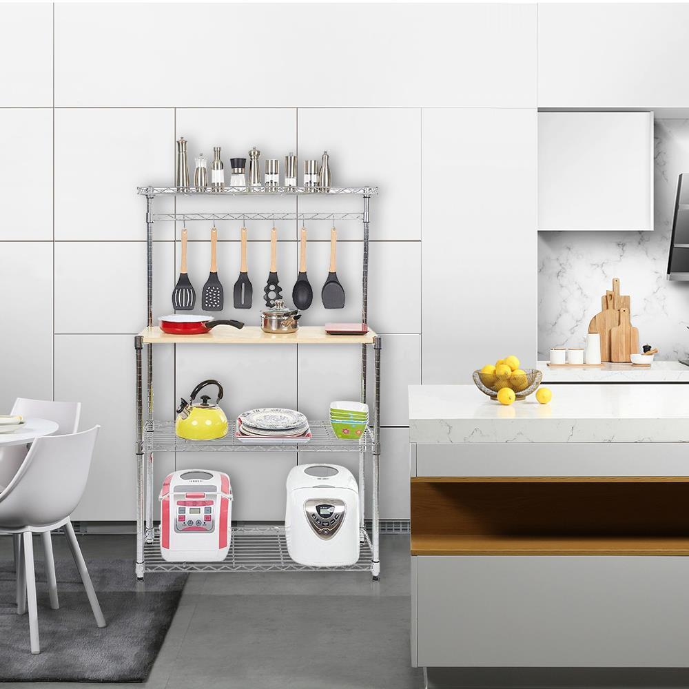 4 Tier Kitchen Bakers Rack Home Furniture Microwave Stand Storage Shelf w Hooks Very well made.