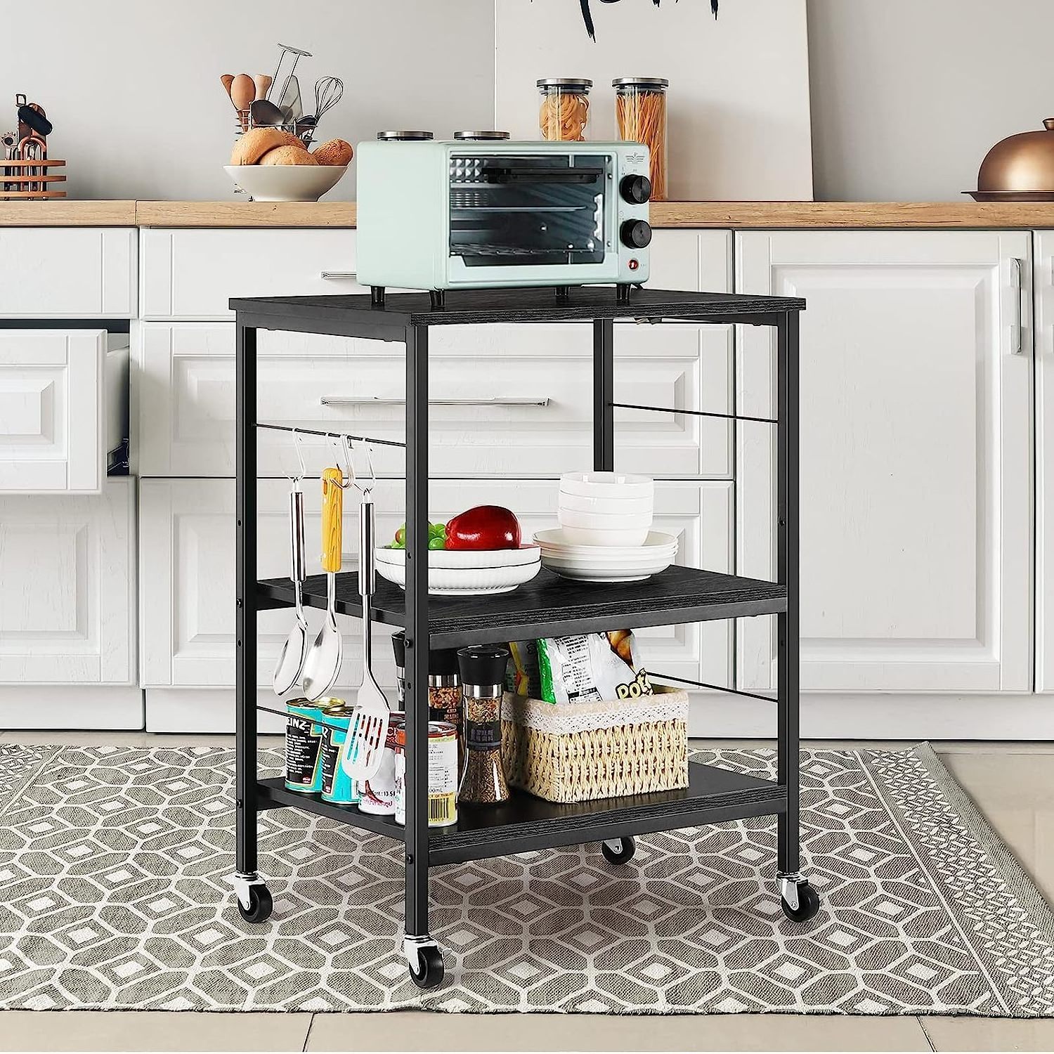 3 Tier Kitchen Cart with Storage on Wheels Small Bakers Rack Black Coffee Bar Cart Kitchen Accessories Metal Iron with 10 Hooks BestSuppliers Very well made.