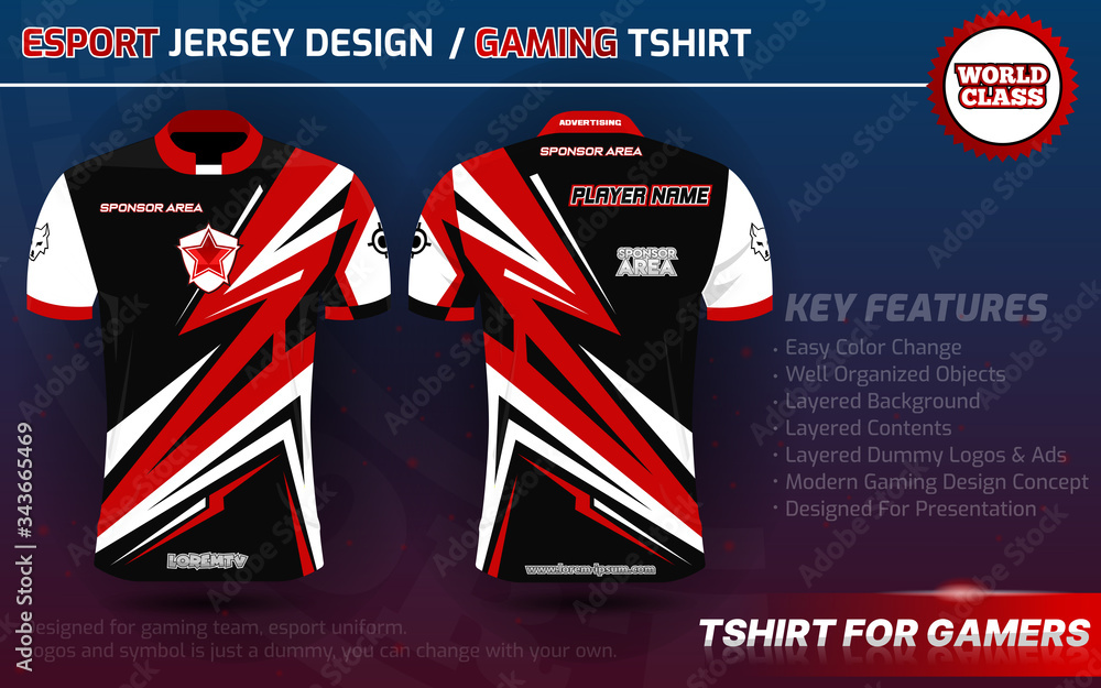Gaming Tshirt or Esport Jersey Uniform Design Template with Clean Very well made.