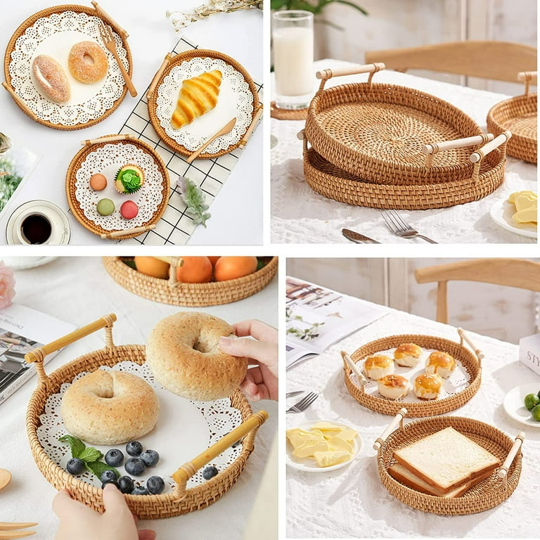 Rattan Round Serving Tray Hand Woven Rattan Tray Serving Tray with Handles Wicker Tray Basket Tray for Bread Fruit Food Coffee Breakfast Display Very well made.