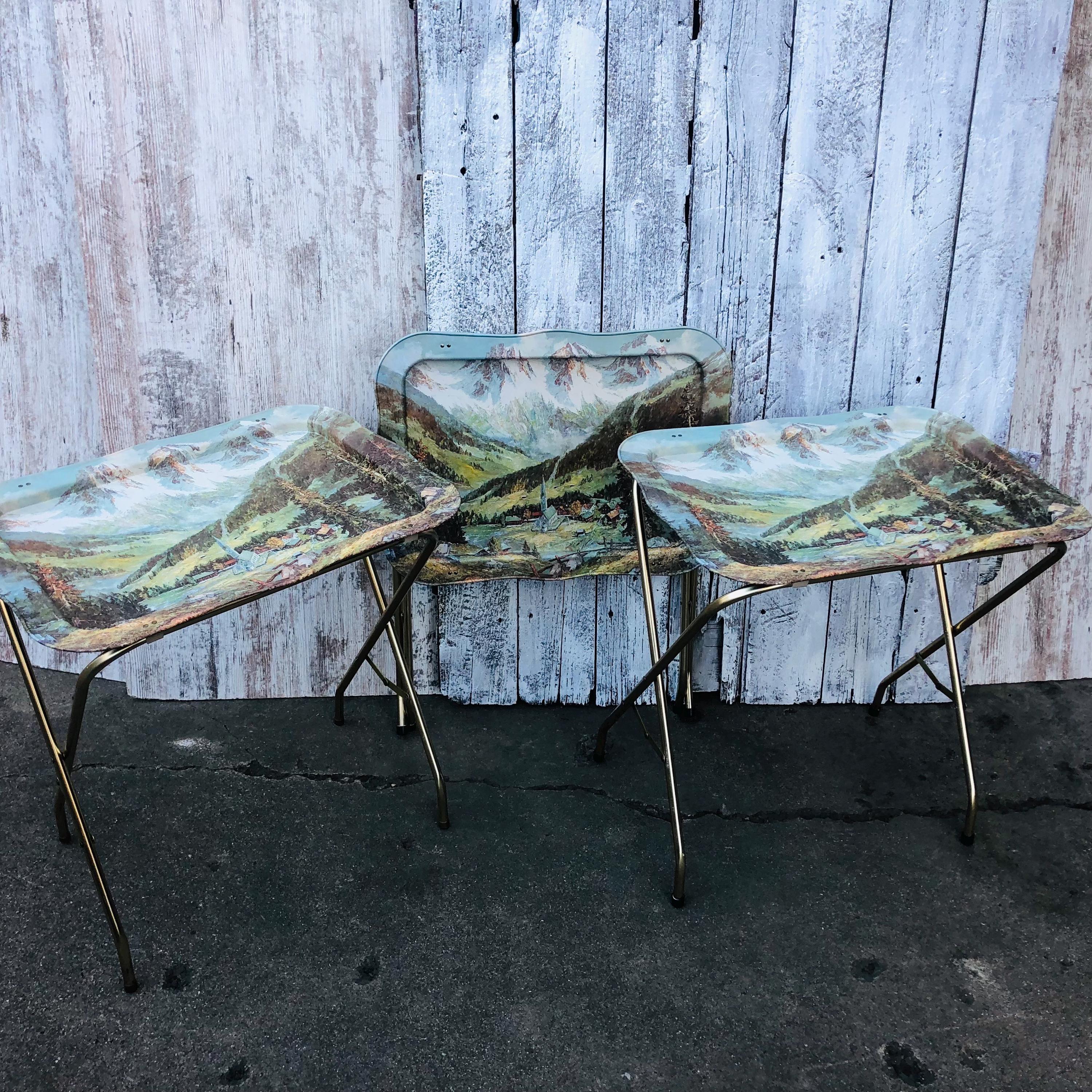 4 Mountain Metal TV Trays Landscape Mid Century Modern Mountaintop Landscape Cabin Colorado VINTAGE MINT Rocky Mountains Etsy Very well made.