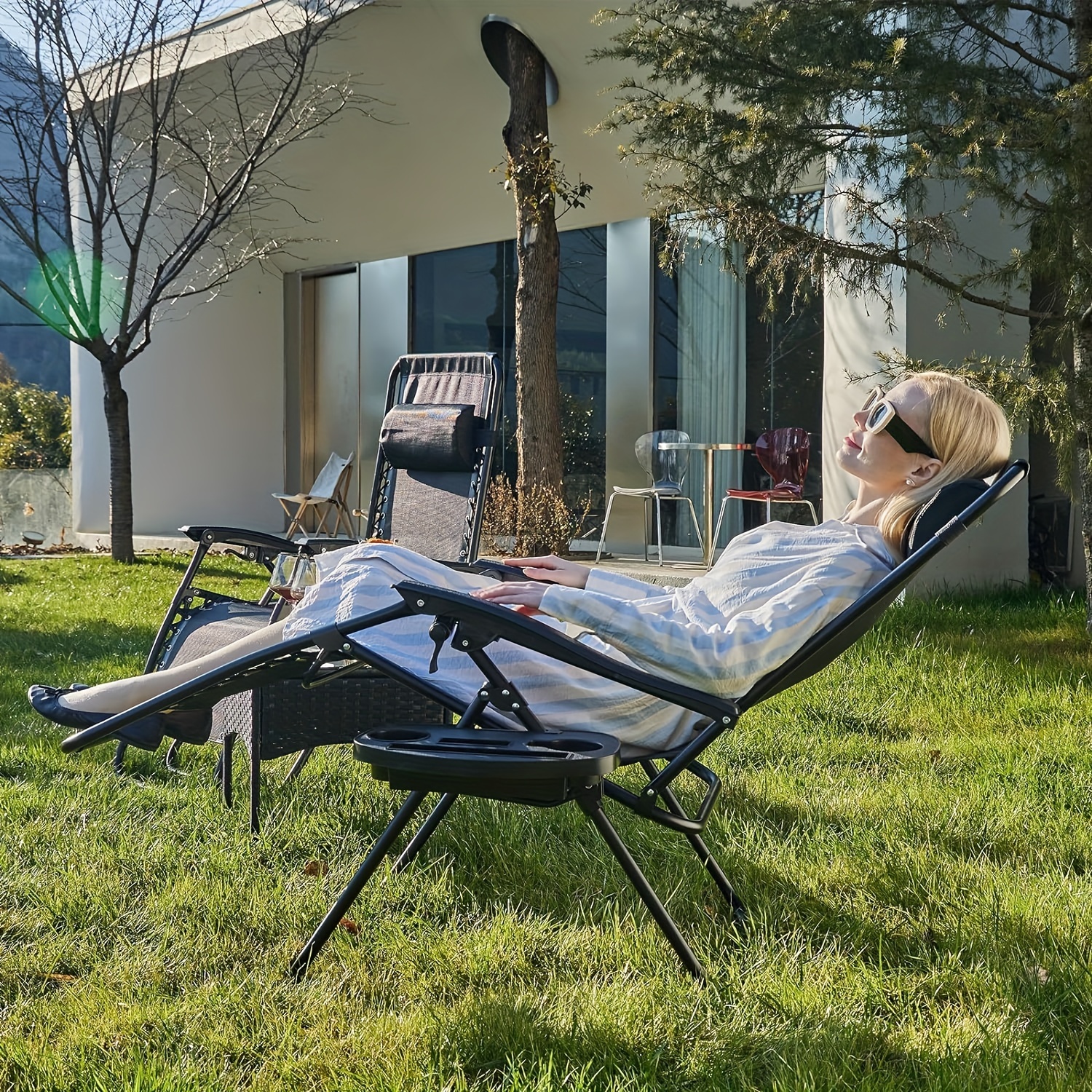 Set of 2 Zero Lounge Chairs Ergonomic Adjustable Lying Angle Sturdy Steel Mesh Support Outdoor Patio Folding Recliners for Pool Beach with Pillow and Cup Holder Very well made.