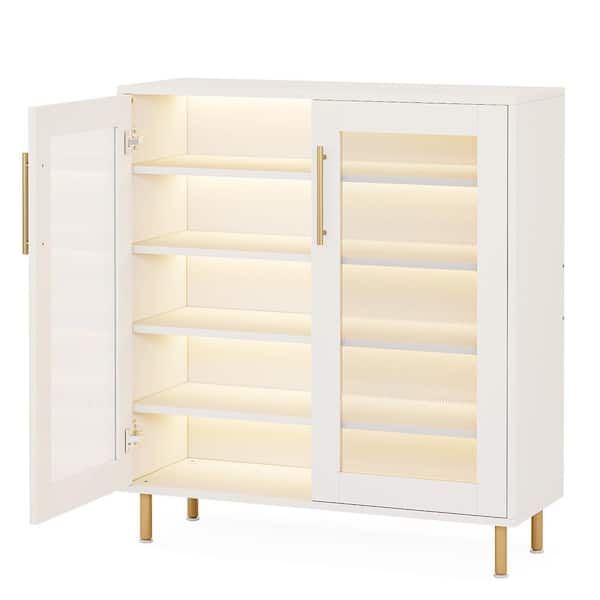 BYBLIGHT 39.4 in. H x 31.5 in. W White Modern Shoe Storage Cabinet with Doors LED Lights 5 Tier Shelves BB XK0585GX The Home Depot Very well made.