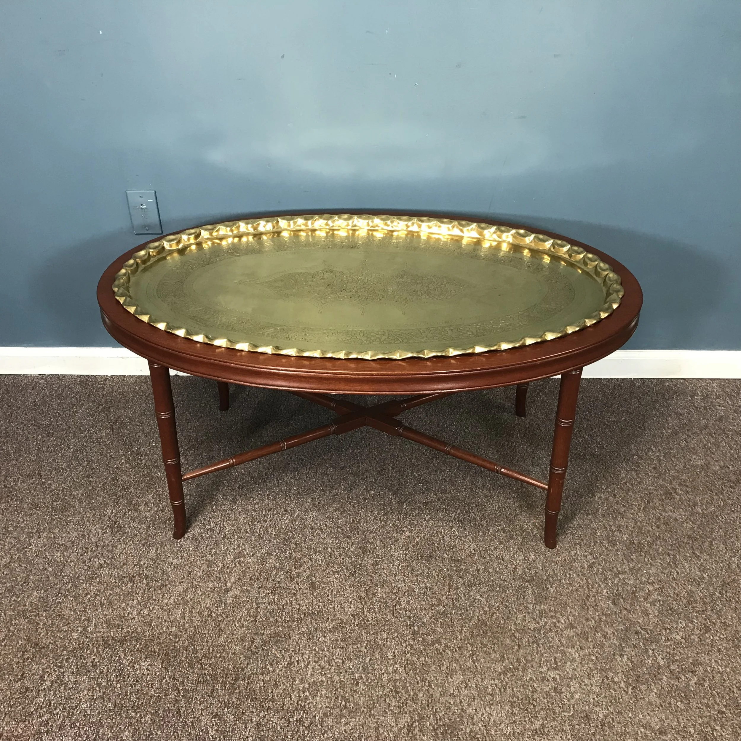 Faux Turned Bamboo Oval Coffee Table with Brass Tray Ardesh Very well made.