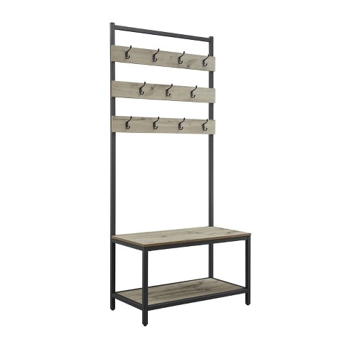 Hampton Transitional 11 Double Hooks Bench and Lower Shelf Hall Tree Gray Gray Wash Linon Very well made.
