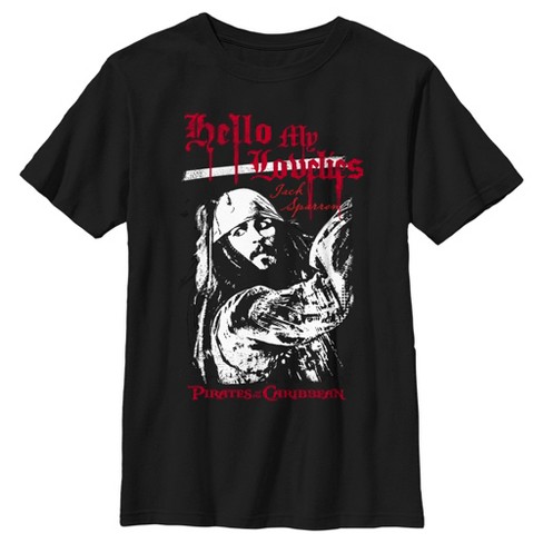 Boy s Pirates of the Caribbean Curse of the Black Pearl Jack Sparrow Hello My Lovelies T Shirt Black Medium Very well made.