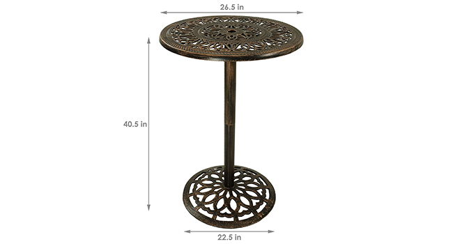 Amazon Sunnydaze 40 Inch H Cast Iron Bar Height Patio Table 26 Inch Tabletop Diameter Bronze Color Patio Lawn Garden Very well made.