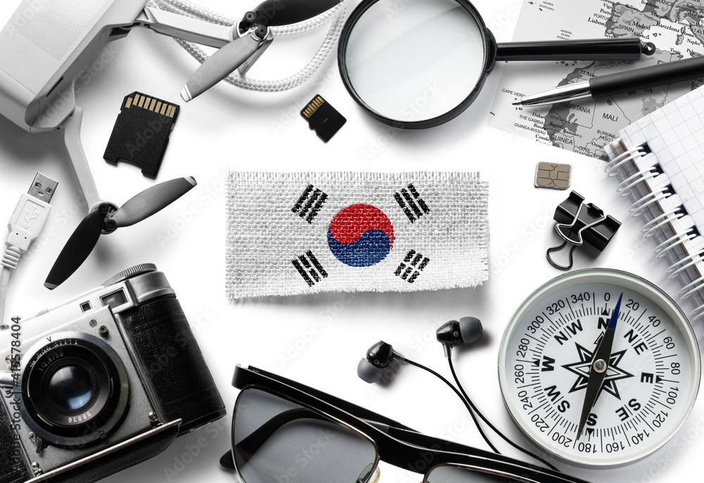 Poster Print Flag of South Korean and travel accessories on a white background 40x26.7 cm Very well made.