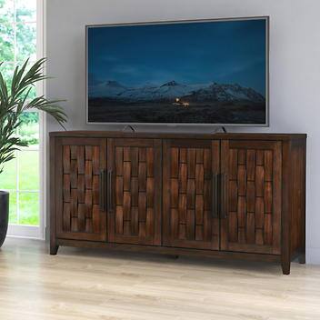 Tresanti 72 Harper TV Console 2 Adjustable Shelves in Each of the 2 Double Door Cabinets Very well made.