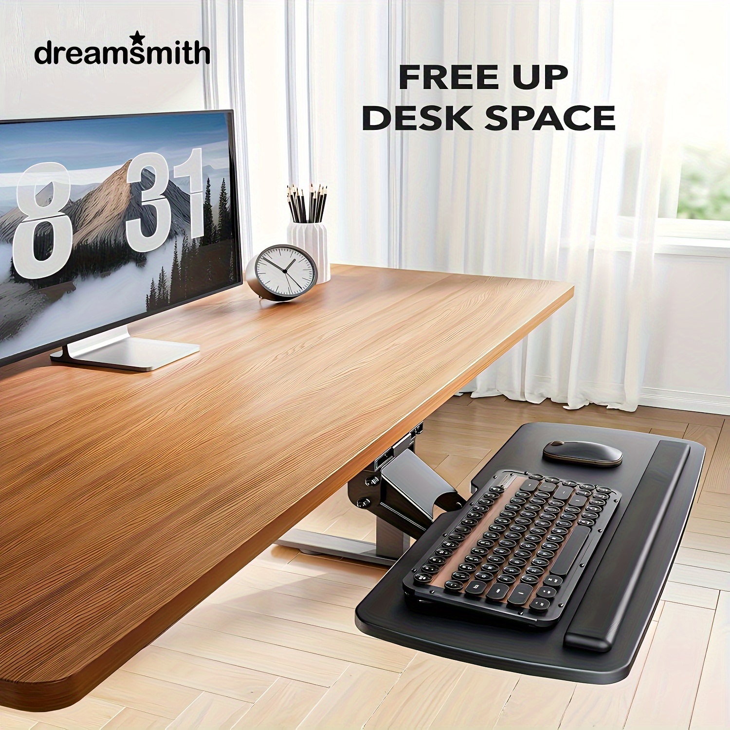 Keyboard Tray Under Desk 360 Adjustable Ergonomic Sliding Keyboard Mouse Tray Ergonomic Corner Keyboard Tray With 45 Adjustable C Clamp For L Shaped Desk Swivel Tilt Computer Keyboard Drawer Very well made.