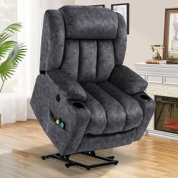 SOCIALCOMFY Large Electric Power Lift Recliner Chair with Extended Footrest for Elderly Big Man Overstuffed Wide Massage Lounge Chairs with Heat 2 Cup Holders Side Pockets USB Ports Fabric Gray Very well made.