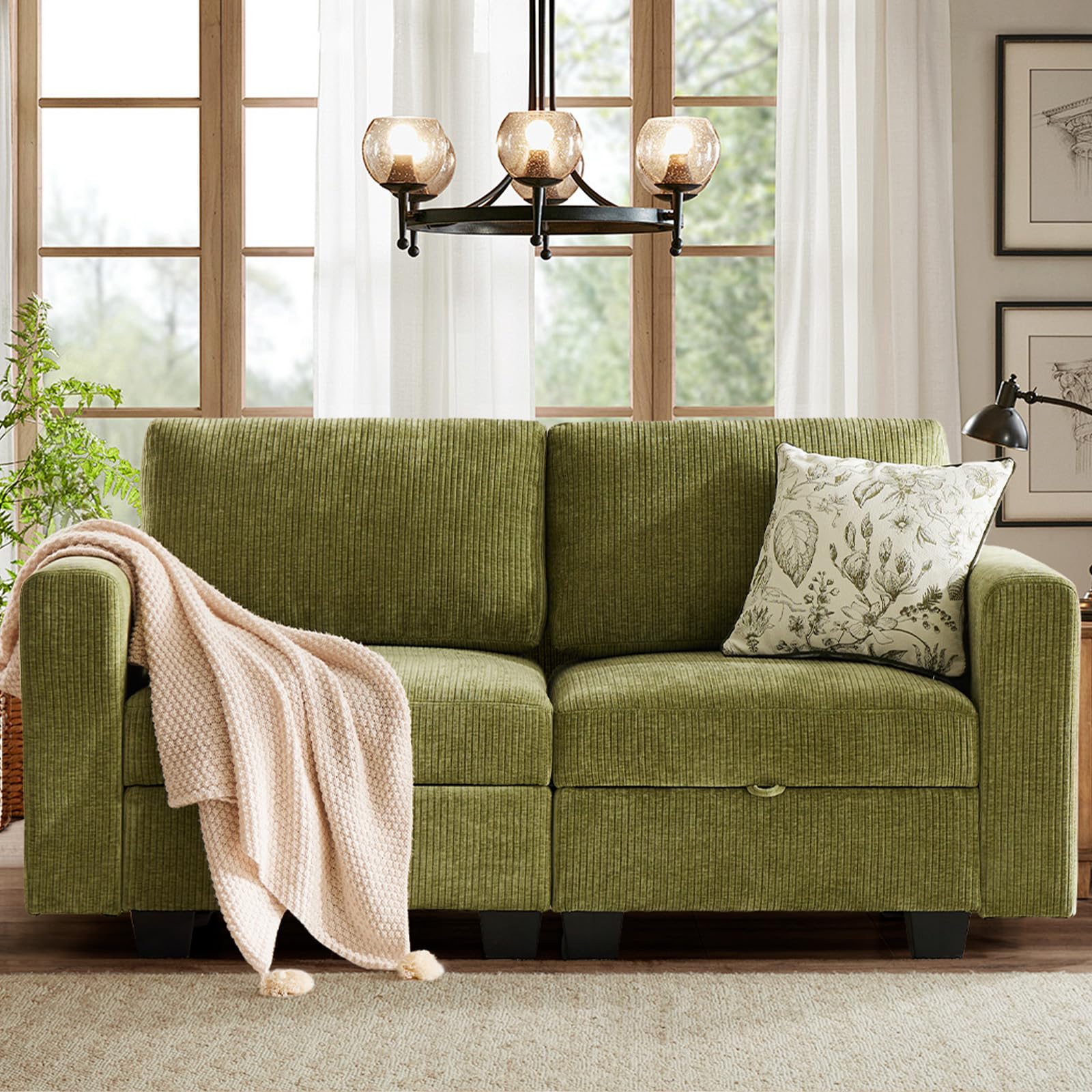 Amazon ABCASA 65 Modular Sectional Loveseat Couch Sofa with Ottoman Storage for Living Room Modern Oversized 2 Seat Couches Green Corduroy Home Kitchen Very well made.