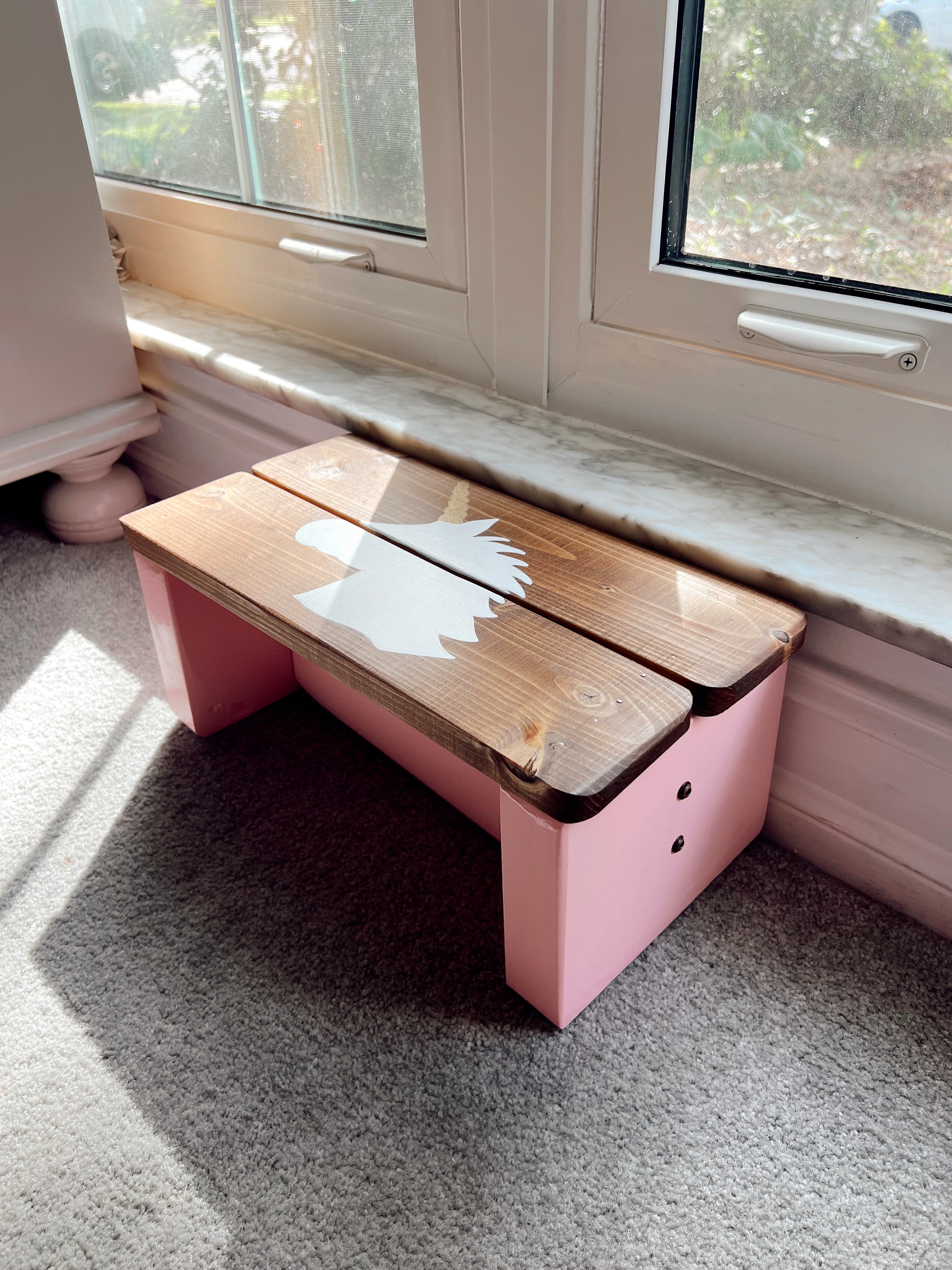 Children s Wooden Stool Unicorn Chair Toddler Step Stool furniture. Funyards Australia Very well made.
