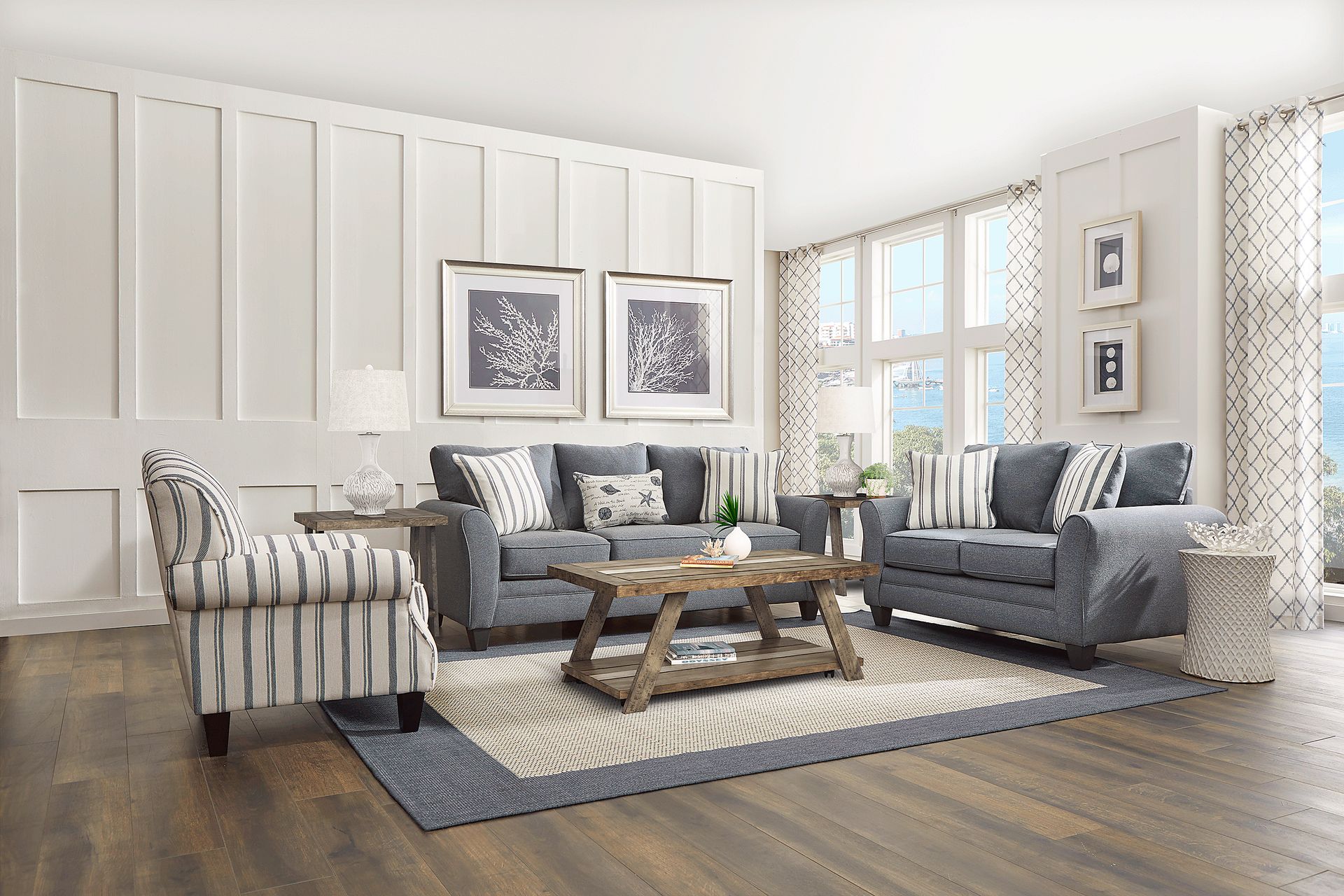 Beachfront 7 Pc Marine Blue Polypropylene Fabric Living Room Set With Loveseat Sleeper 3 Pc Table Set Lamp Rooms to Go Very well made.