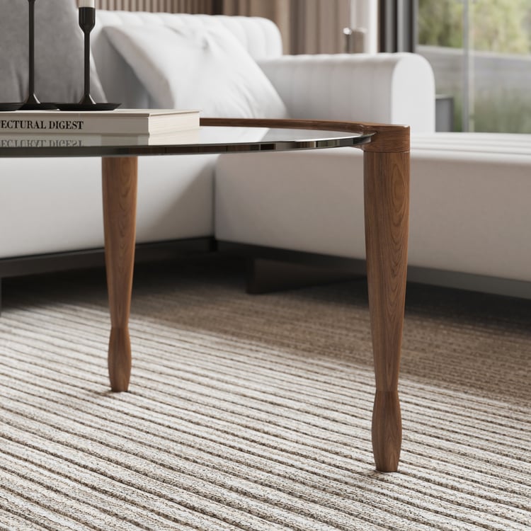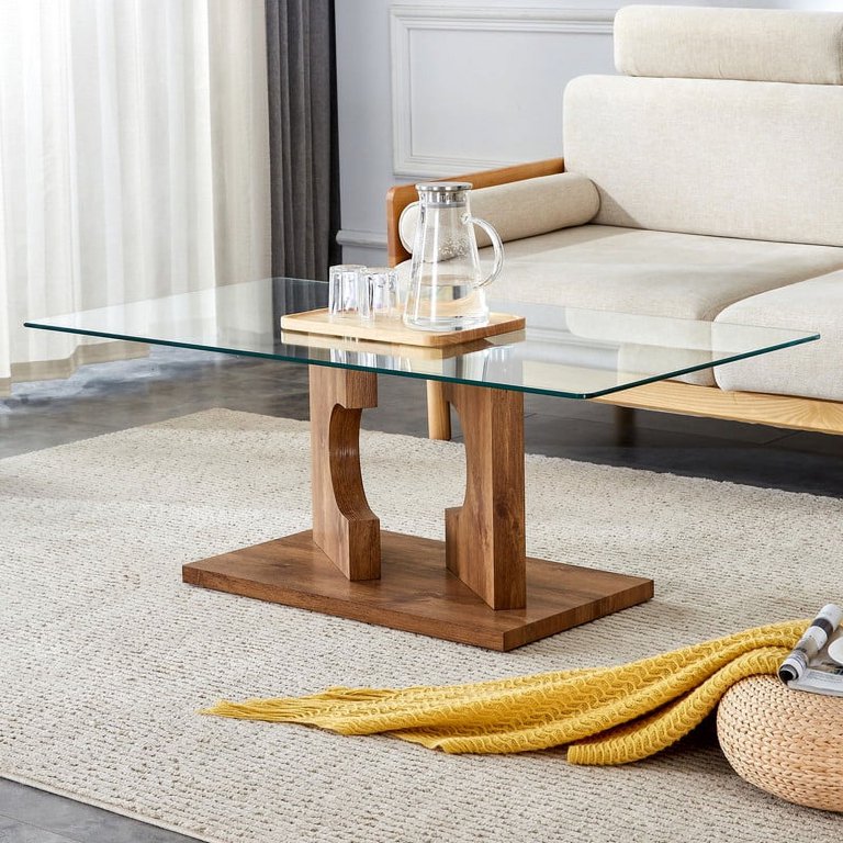 Sudica Glass Rectangular Coffee Table 47 inch Modern Tea Table with Tempered Glass Tabletop and Wooden Legs for Living room. Brown Very well made.