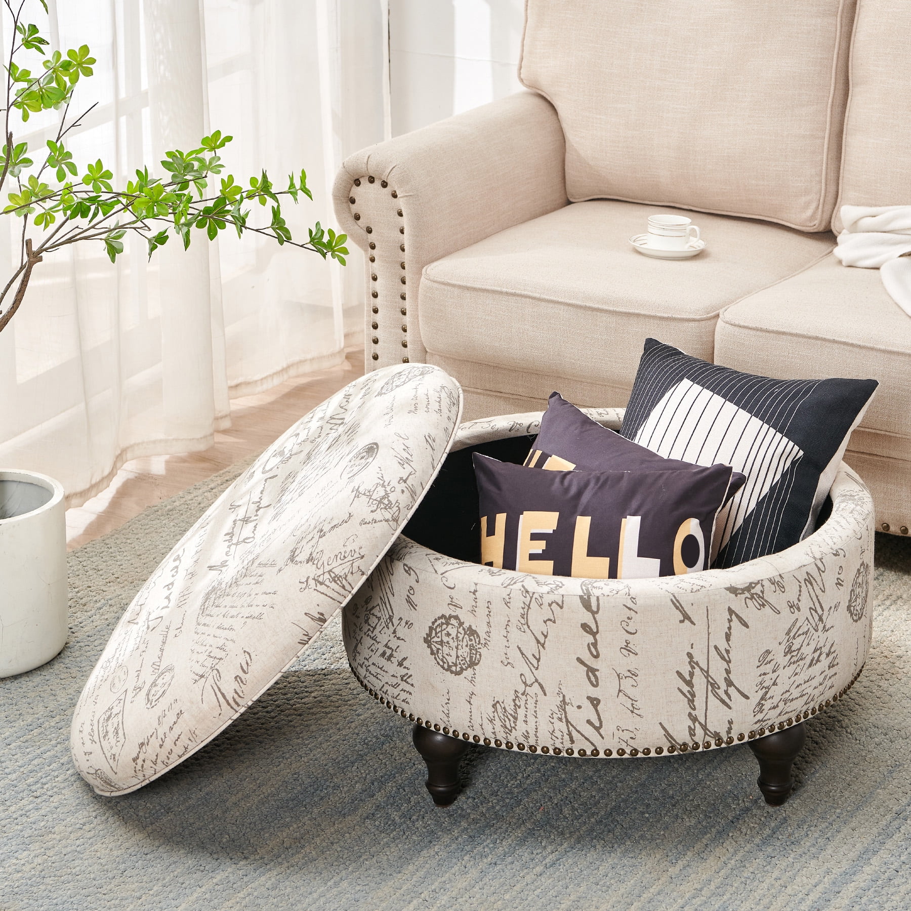 30 Round Storage Ottoman Linen Beige Medium Very well made.