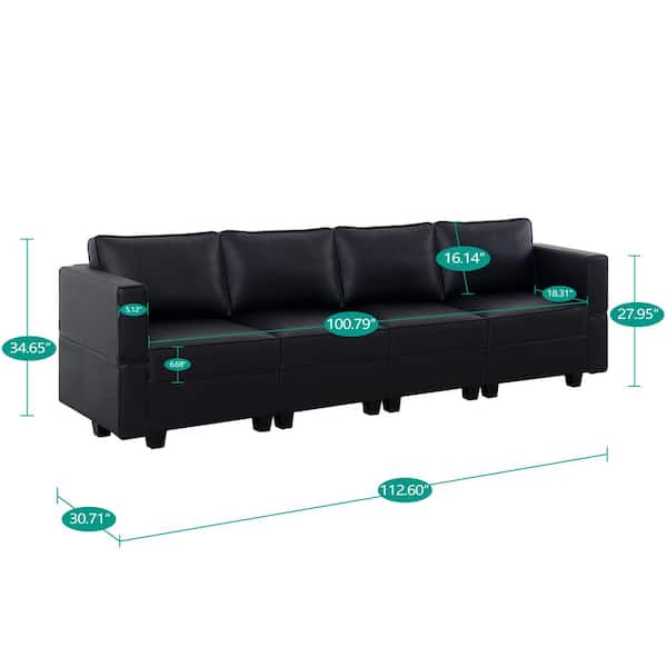 112.6 in. W 1 Piece Black Faux Leather 4 Seater Sofa with Storage Sectional Sofa Living Room Suite Very well made.