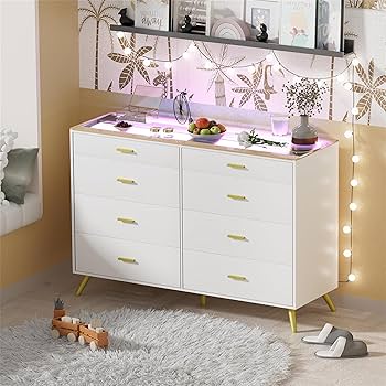 PAKASEPT White Dresser with LED Lights for Bedroom 8 Drawer Dressers with Tempered Glass Top Chests of Drawers with 2 Grid Drawer Storage Organizer Very well made.