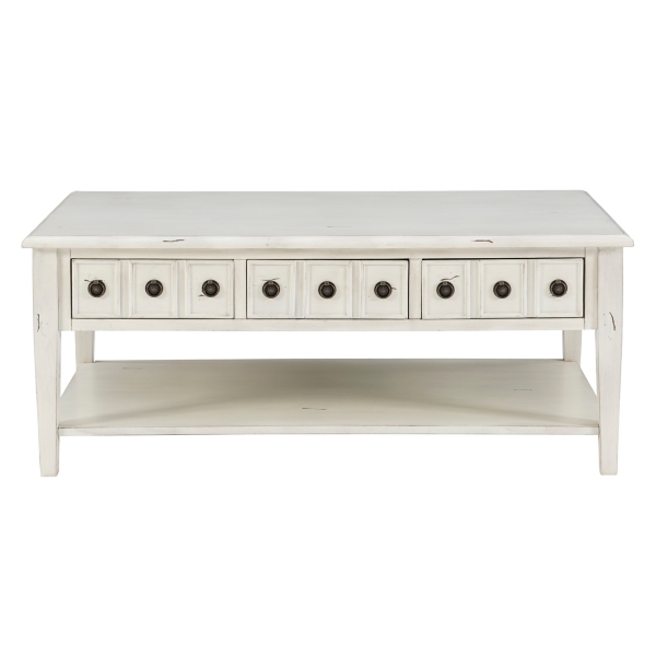 Distressed Cream Wood 3 Drawer Coffee Table Very well made.