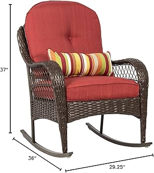 Amazon Better Homes and Gardens Azalea Ridge Porch Deck and Patio Rocking Chair All Weather Outdoor Wicker Rocker Furniture 37 h Seat Depth 19.75 Brown Brown Orange Patio Lawn Garden Very well made.