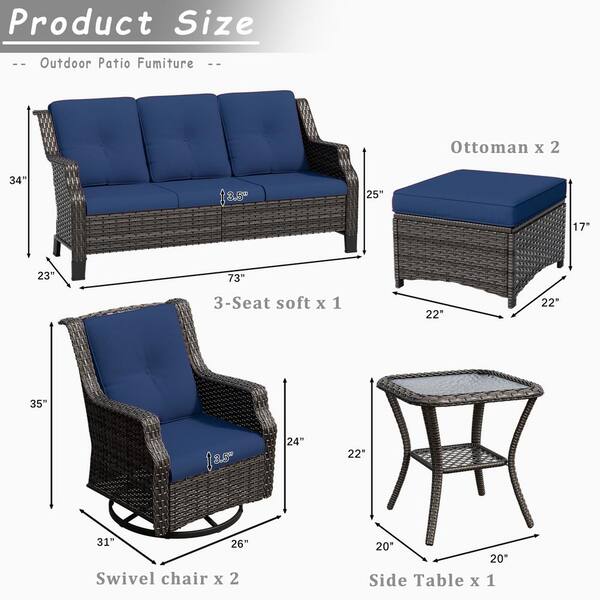 Pouuin 6 Piece Rattan Patio Conversation Set with Off White Olefin Cushions Very well made.