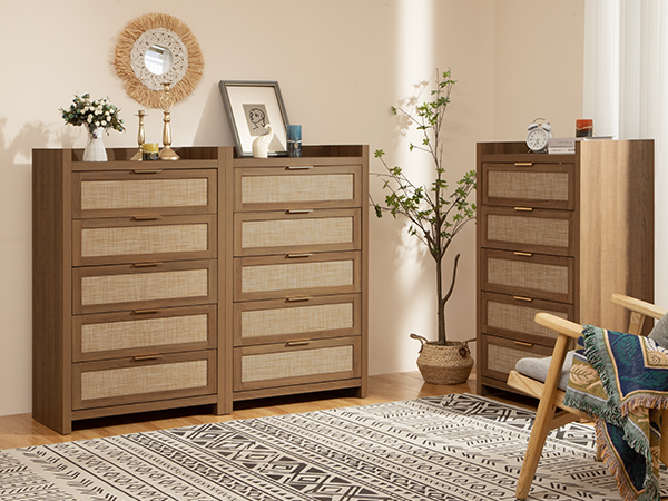 Amazon SICOTAS Dresser for Bedroom Chest of Drawers Tall Dresser with 5 Rattan Drawers Dresser for Closet Boho Clothes Storage Tower Large Very well made.