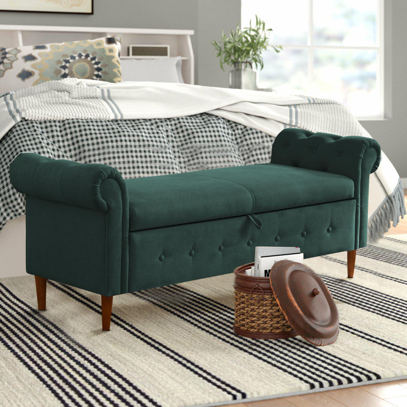 Andeworld Storage Bench with Arms for Bedroom Living Room Entryway Modern Upholstered Velvet Ottoman Bench Green Size 26 Very well made.