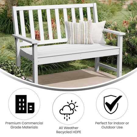 Ellsworth 50 All Weather Indoor Outdoor Recycled HDPE Bench with Contoured Seat in White Very well made.