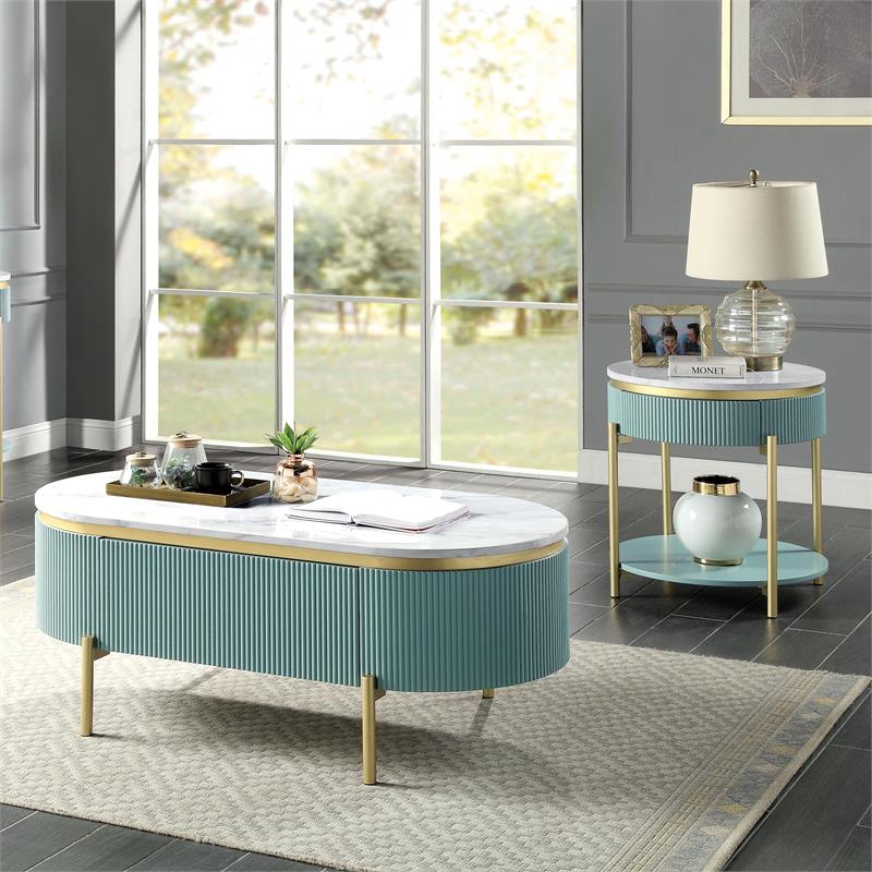 Furniture of America Timi Glam Wood 2 Piece Coffee Table Set in Light Teal Green Very well made.