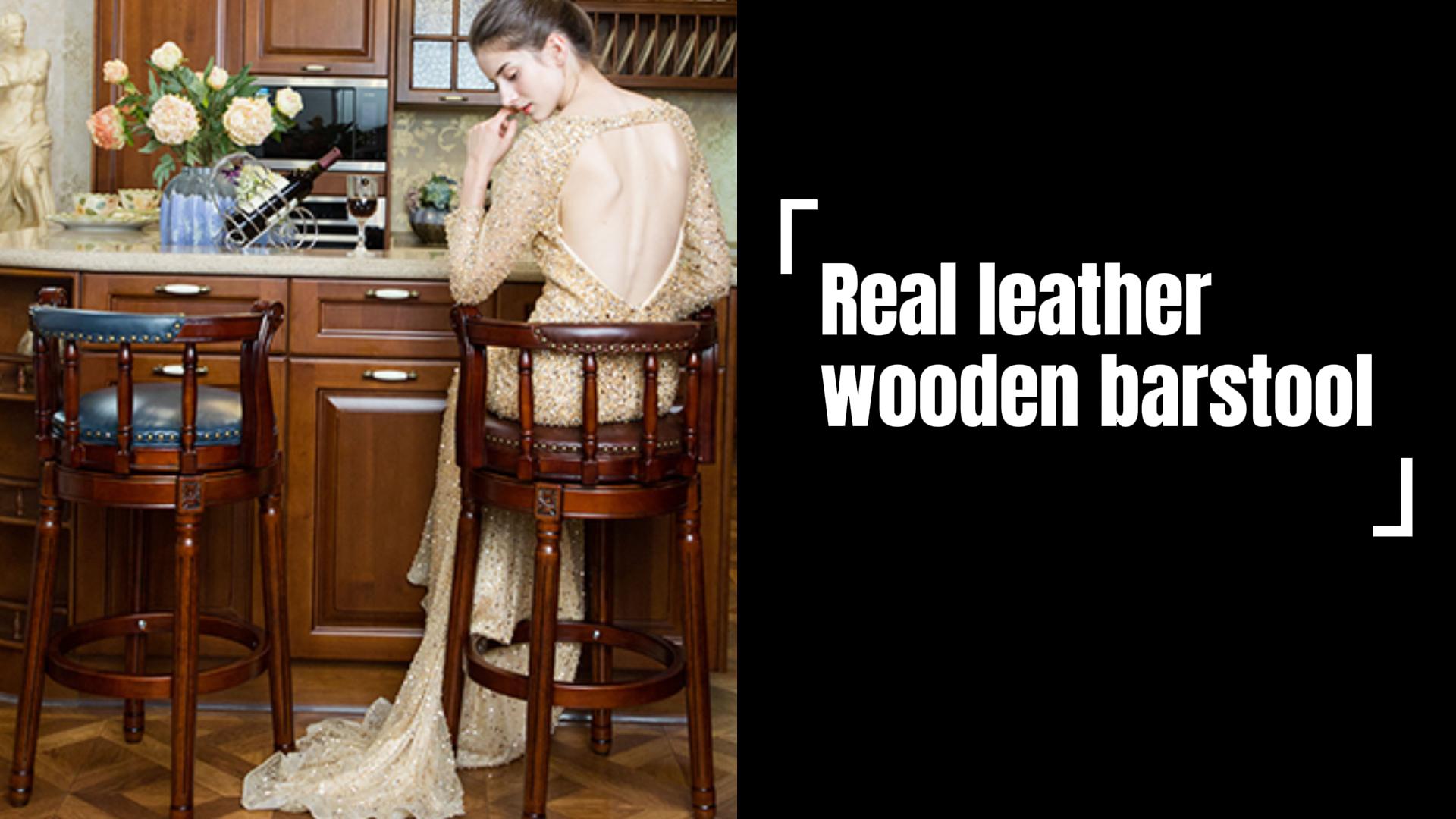 Amazon RAINMOOD Bar Stools Genuine Leather Upholstered Counter Height Swivel Bar Stool with Back Solid Wood Legs Wanul Navy Barstool seat Height 29in Home Kitchen Very well made.