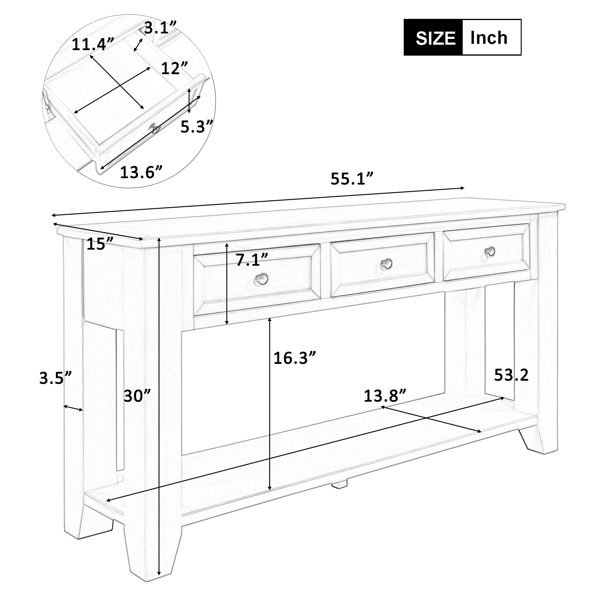 Amazon Farmhouse Modern 55 Inch Console Table Wood Sofa Entry Table with Drawers Open Shelf for Living Room Entryway Bedroom Blue Home Very well made.