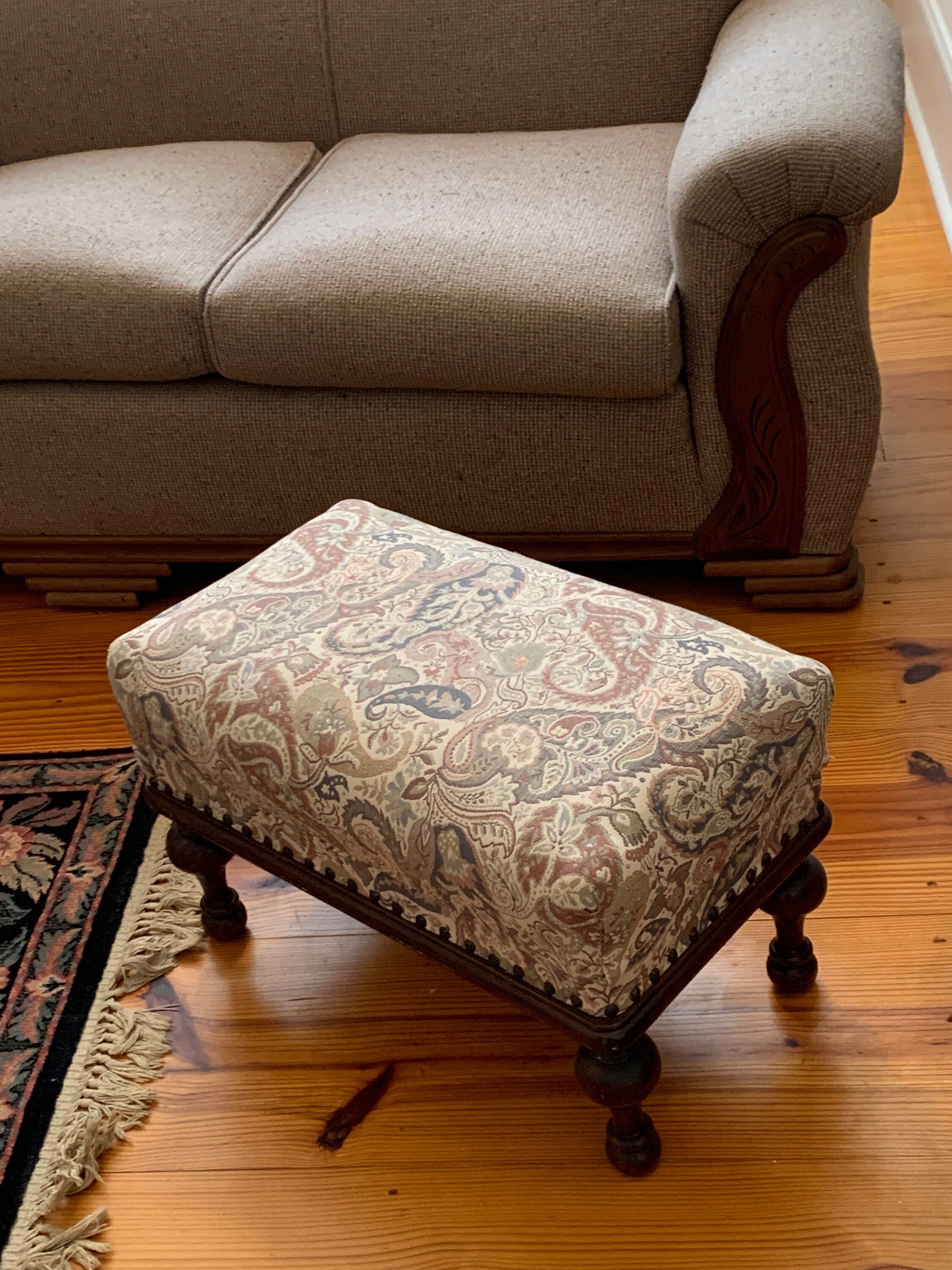 Baxton Studio Yashiya Mid Century Modern Off White Boucle Upholstered and Walnut Brown Finished Wood Ottoman Very well made.