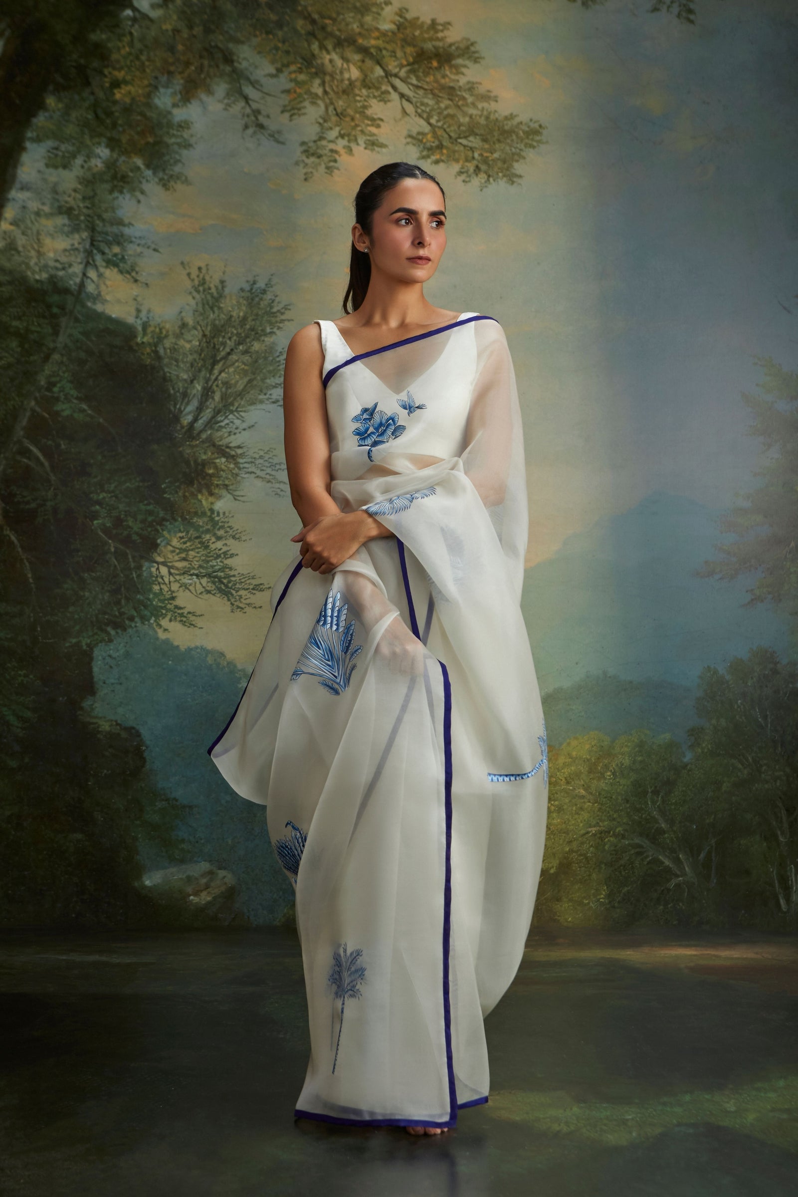 Kapardara Indigo Feathered Canopy Saree Elahe Very well made.