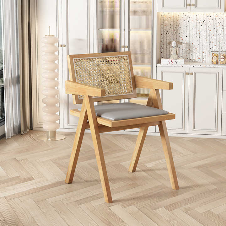 Best Supplier Wabi Sabi Fashionable Hotel Cafe Restaurant Dining Buffet Home Solid Wood Rattan Woven Arm Dining Chair Very well made.