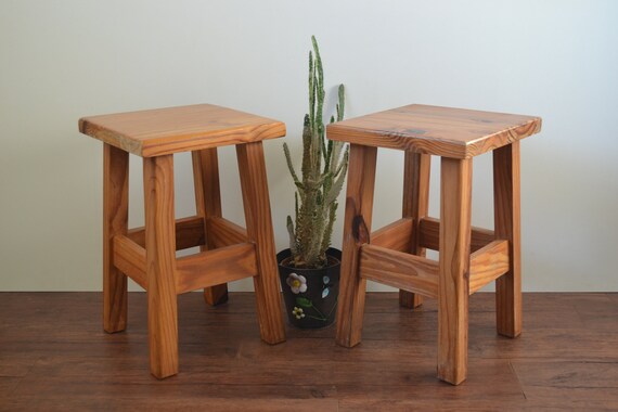 Vintage Pair of Small Pine Stools 45cm X 30cm X 29cm Etsy Very well made.